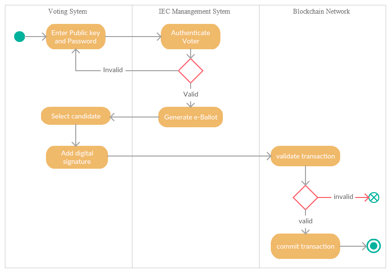 Process View—UML activity diagram of blockchain based decentralised voting system